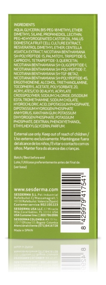 Lo que peor llevamos cuando empezamos a envejecer es la flacidez. Y es que una piel que no está firme desdibuja los contornos y las proporciones, además nos hace parecer más cansad@s. Por eso hemos puesto toda la capacidad investigadora y tecnológica de Sesderma detrás de esta fórmula, un potente concentrado antiedad que estimula la regeneración celular, reduce las arrugas y multiplica por 3 la producción de colágeno y elastina de tu piel. Biotecnología para recuperar la firmeza de tu piel.