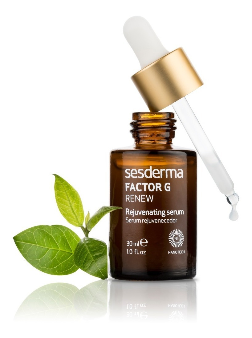El serum más tecnológico de Sesderma para que despierte el colágeno de tu piel. Biotecnología al servicio de una piel nueva. Factor G Renew Serum contiene 7 factores de crecimiento de origen biotecnológico 100% vegetal de máxima tolerancia que alcanzan las células diana en tu piel y multiplican x3 la producción de colágeno y elastina. En solo 28 días piel más suave, hidratada y elástica.