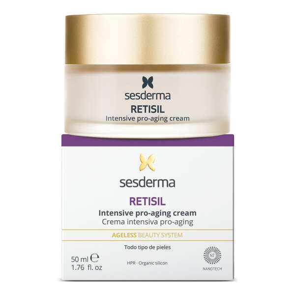RETISIL CREMA Crema facial intensiva pro-aging. Reduce arrugas y reafirma la piel de rostro, cuello y escote. Mejora la flacidez, líneas de expresión, manchas y textura irregular.