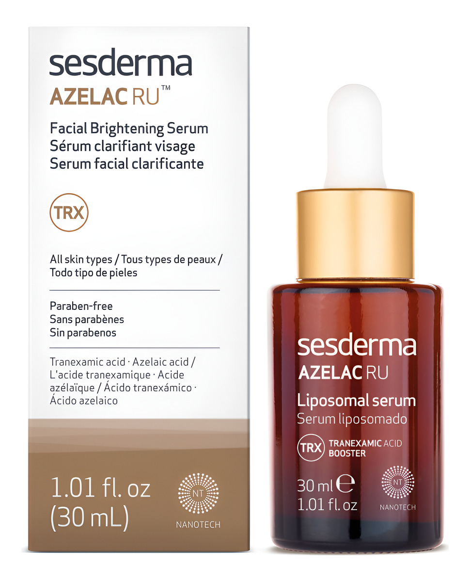 Azelac Ru Liposomal Sérum intensivo despigmentante con alta concentración de activos que, gracias a la tecnología Nanotech, actúan directamente sobre el origen de las manchas.